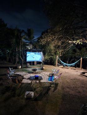 Cinema ao ar livre, menu inspirado no filme e trilha sonora temática.